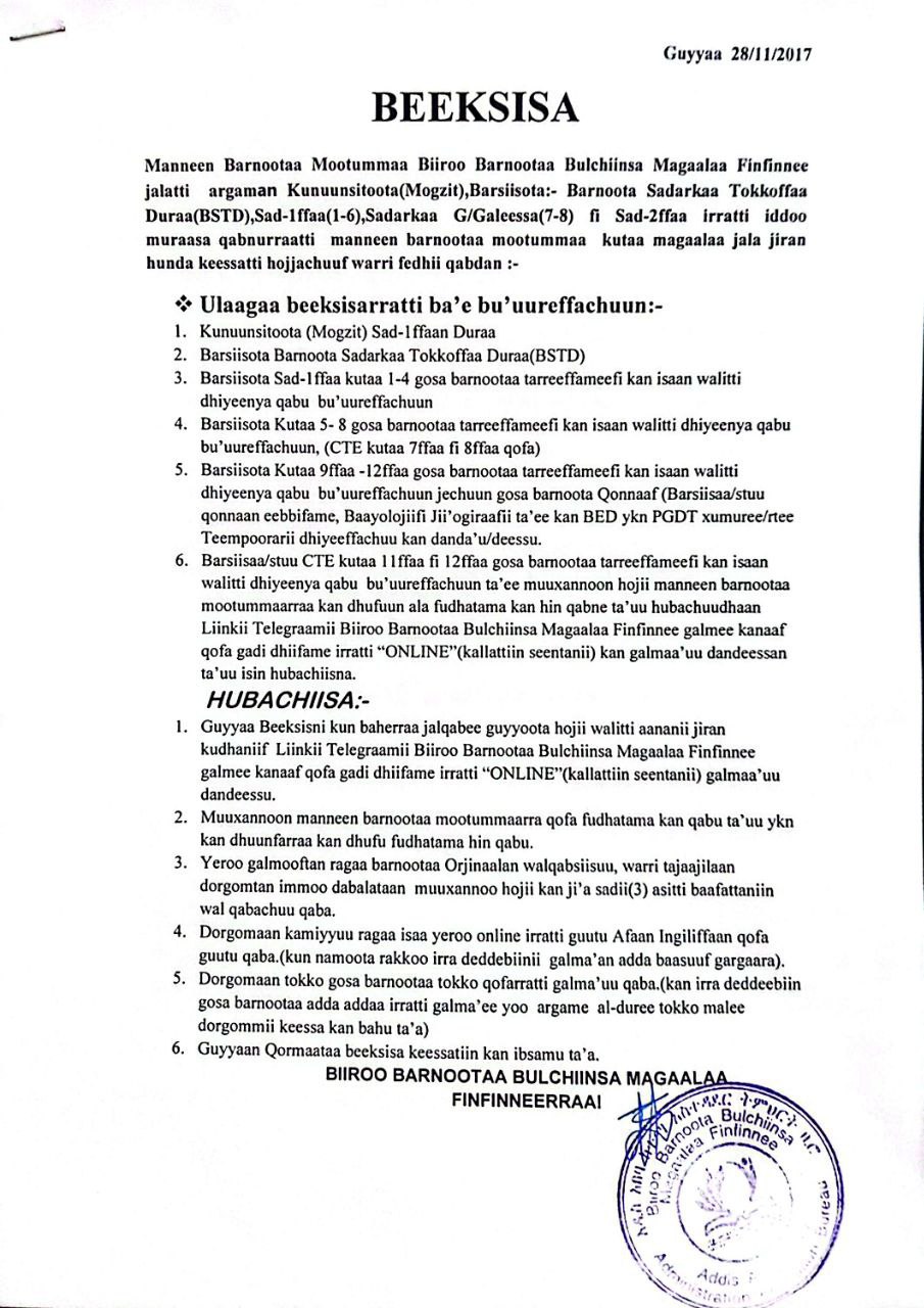 2. ከአንደኛ እስከ አራተኛ ክፍል ለማስተማር (አፋን ኦሮሞ ዘርፍ) ማመልከቻ ሊንክ